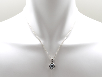 PJ-514he カットヘマタイト×プラントモチーフフレーム・シルバーペンダント