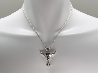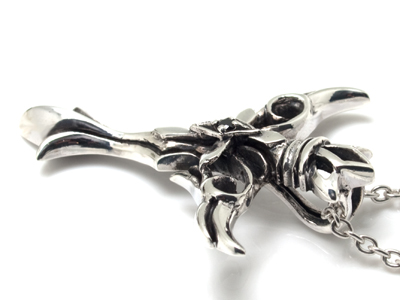 クロスをベースにウィングとクラウンをあしらい、センターの小さなクロスモチーフにブラックジルコニアをセット。シルバーの質感を生かした彫金が目を引きます。(チェーンは別売りです)