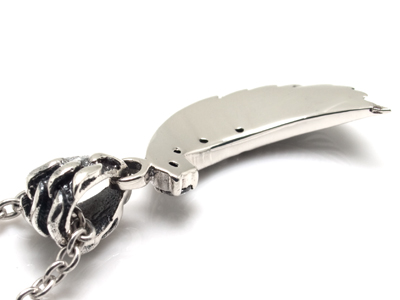 クールなウィングモチーフペンダント。ジルコニアでアクセントをつけたアイテムです。カン部分のレリーフとしっかりかけられたいぶしの対比にも注目。(チェーンは別売りです)