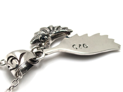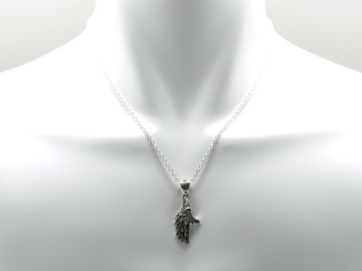 - PS-667b ブラックキュービックジルコニア×ダブルフェザーモチーフ・シルバーペンダント