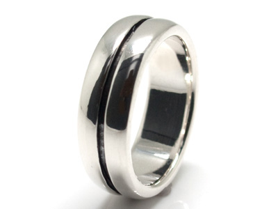 ブラックのラインがよく映えるおしゃれな甲丸リングです。
