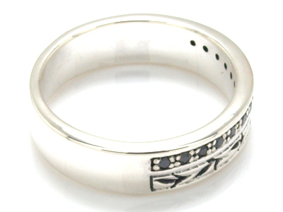 - R15412bk-19x ブラックキュービックジルコニア×リーフモチーフ・ハーフエタニティシルバーリング・19号